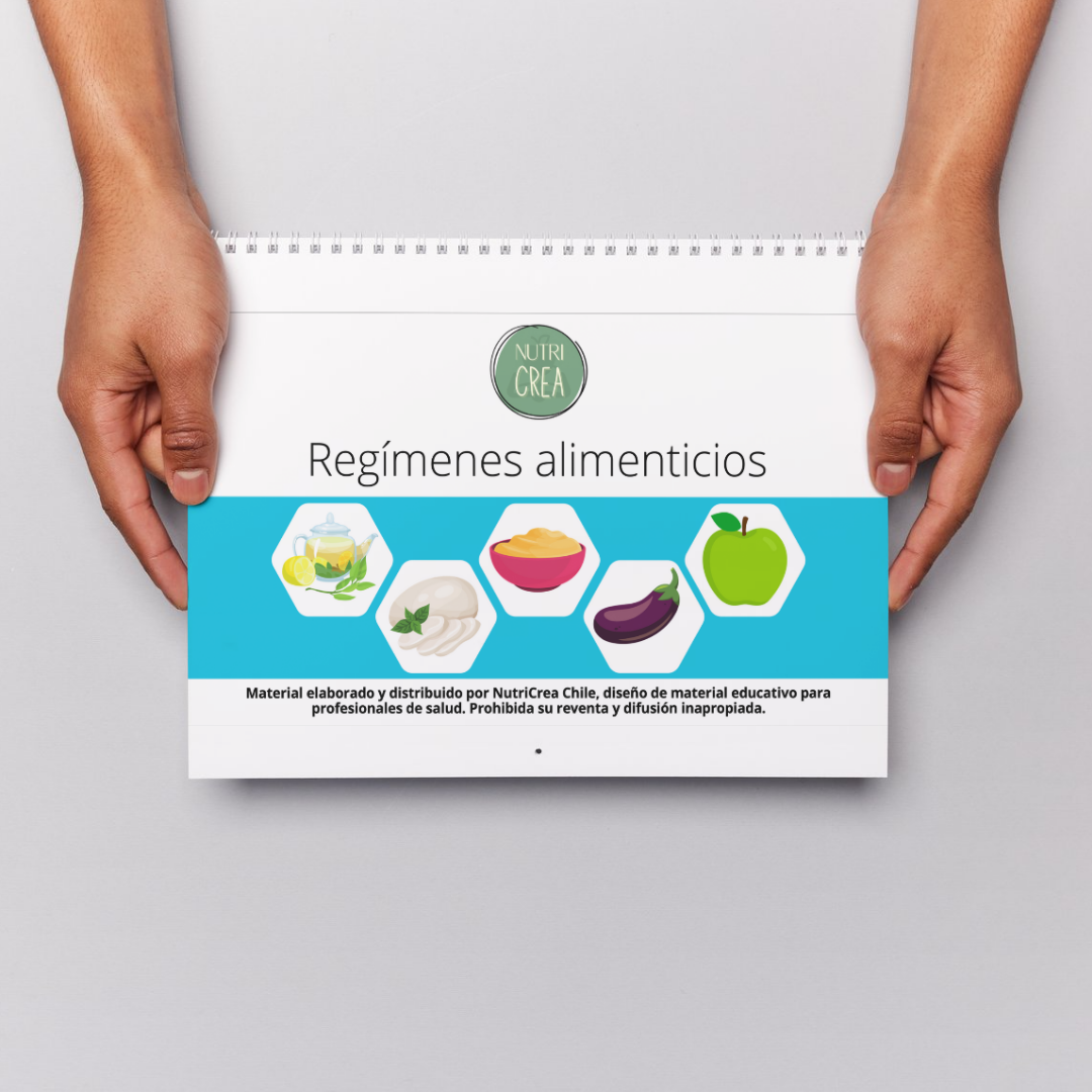 Guía corta para educaciones sobre regímenes de alimentación según condición de salud. Incluye consistencia y digestibilidad para mezclar en el disco. Contiene listado de alimentos para cada tipo de régimen. En el rotafolio se profundizan sobre los aspectos tanto cualitativos como cuantitativos de la dieta.